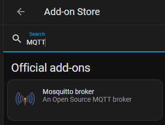 We want to install the MQTT broker, this is the service that will be responsible for recieving and sending all the messages between devices. Use the search and look for MQTT which should then give you the option to select “Mosquitto broker”, which is very simple to get working out of the box.