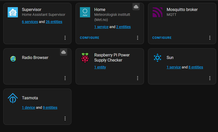 Back into ‘Settings’ then ‘Devices and Services’ and there should be the Tasmota integration discovered. Press ‘Configure’ and it should automatically configure and detect the ESP device we’ve just flashed.