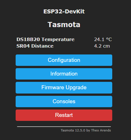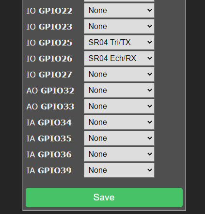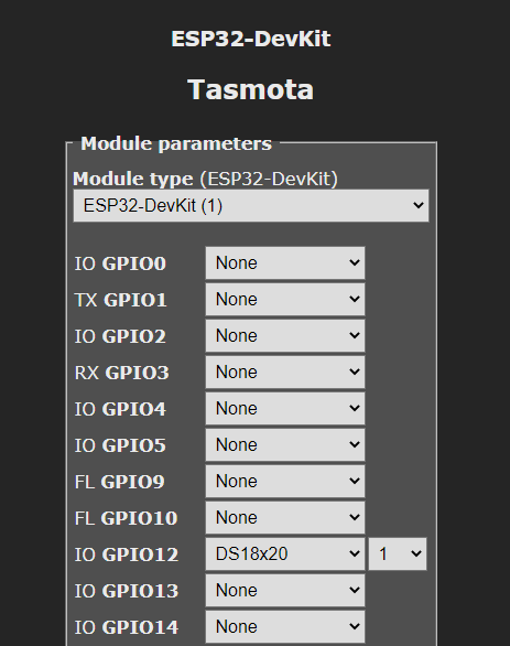 In the ESP go into the ‘Configuration’ menu and select ‘Configure Module’, on GPOI12 select the SD18x20 module and ‘Save’.
