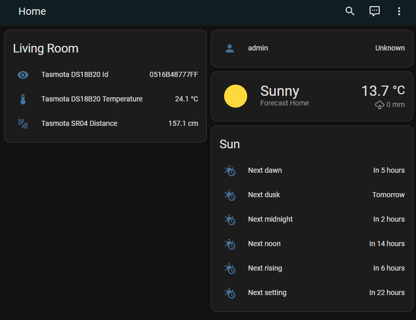 Back over in home assistant, we can check the homepage, and we should see the sensor listed and the current temperature reported by the sensor via the ESP.